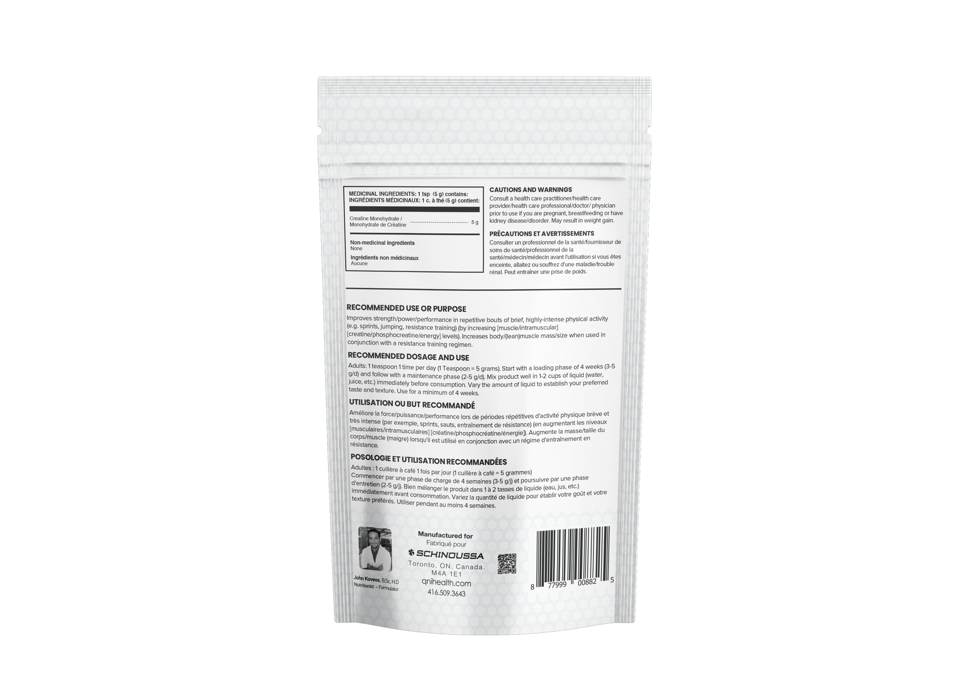 Schinoussa Superfoods Creatine Monohydrate is a dietary supplement designed to enhance muscle performance during short-duration, high-intensity resistance exercises. Each serving contains 5g of creatine monohydrate to support athletic performance.